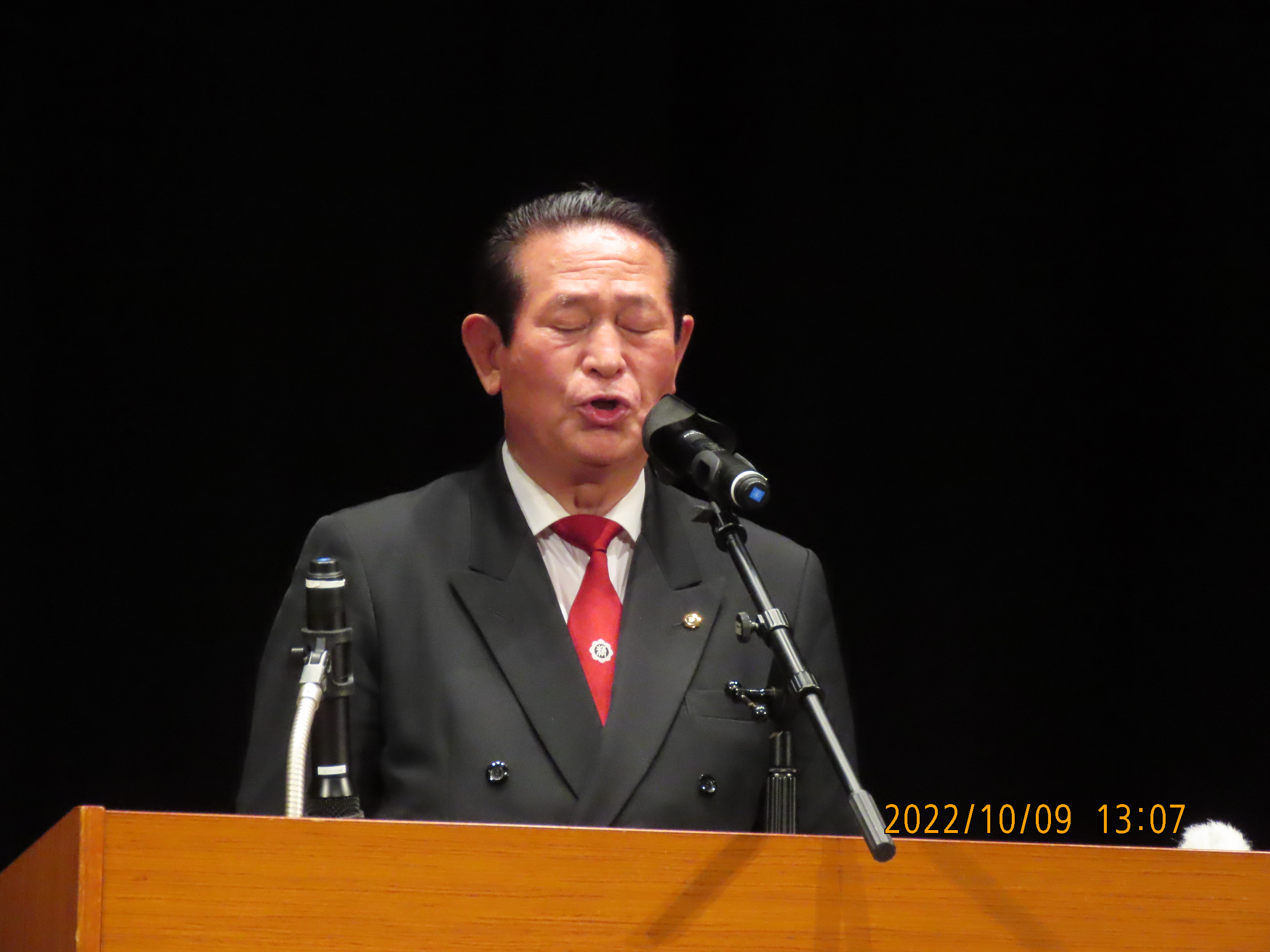研修会は佐藤精堂副幹事長の吟礼(写真2)、渡精華指導本部長の挨拶(写真3)と続き、いよいよ宗家による吟詠指導が始まりました。なおこの日の司会進行は指導本部員の古城精宝先生、伴奏は宗嗣先生が担当されました(写真4)。