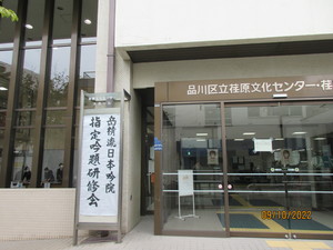 10月9日(日)午後、夕方からの降雨予報のもと、荏原文化センター(ホール)にて指定吟題研修会が開催されました(写真1)。